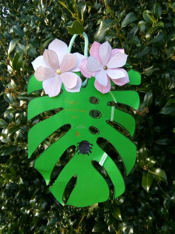 Mother's Day and a gift for mum, fabric pouches filled with treats were created. The Swiss Cheese Plant was chosen as a template for the cards that could be hung. This symbolises long life, respect and honouring elders in the Chinese culture. This plant can live up to 40 years.